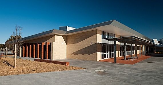 The site has a gentle fall across it from the north (rear) to the south (front) corners of approximately 6 metres and has an approximate total area of 74,500m2 The existing building group is located to the lower south-eastern sector of the site, with the western sector being occupied by playing field and northern area occupied by tennis, basketball and netball hard surface courts. The site includes a high number of well-established mature trees of varying speciesThe Namadgi School incorporates a range of sustainability principles. During construction materials with a high recycled content were used, such as the carpets and internal wall linings. A highly insulated building envelope was used as was “green” concrete mix. Clever design allows the maximisation of natural ventilation and learning spaces are filled with natural light. A photovoltaic solar system has also been installed to supplement the school’s power supply. This will have an output of 30kW.